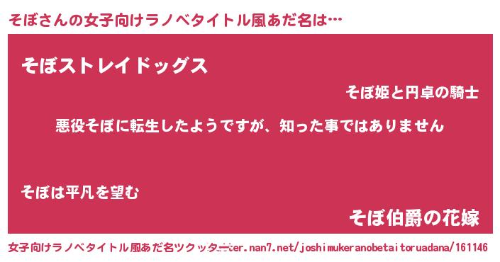| 男性向けラノベタイトル風あだ名 | 『この素晴らしい世界にそぼを!』 |