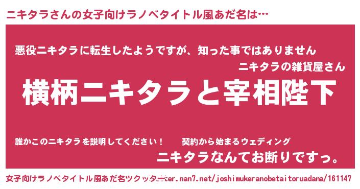 | 男性向けラノベタイトル風あだ名 | 『ニキタラに滅ぼされるだけの簡単なお仕事です』 |