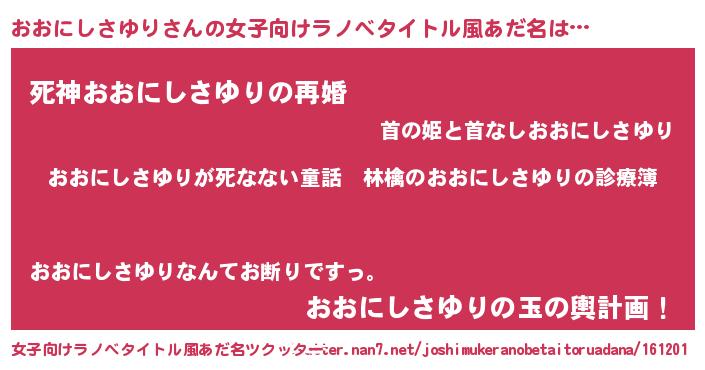 | ヘコむあだ名 | 『おおにしさゆり(苦笑)』『おおにー』 |