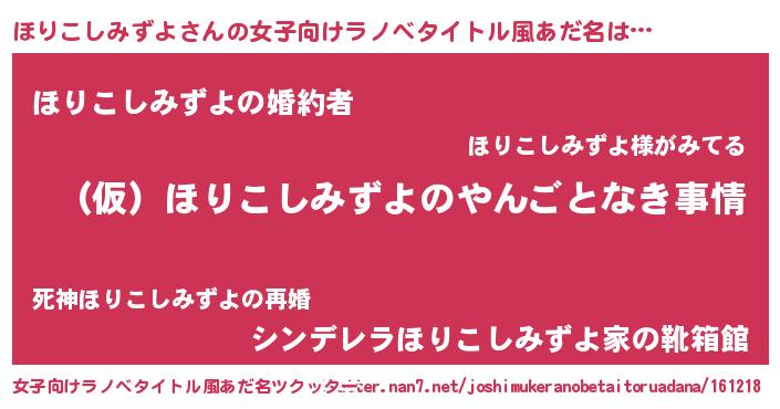 | 男性向けラノベタイトル風あだ名 | 『ほりこしみずよの憂鬱』 |