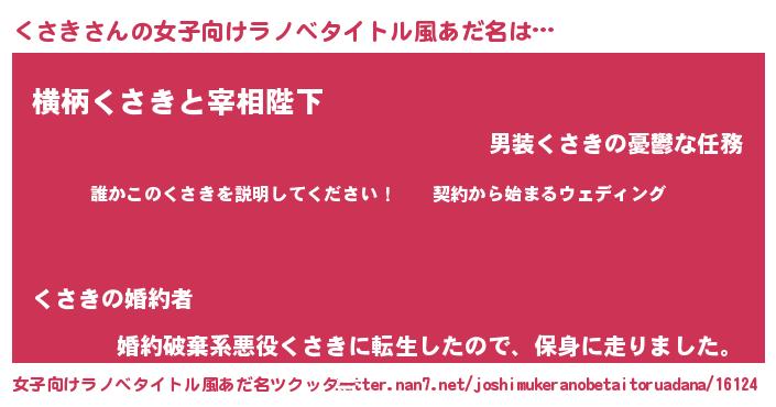 | 胡散臭い通販商品みたいなあだ名 | 『億万長者になれる水晶球…その名も「くさき」』 |