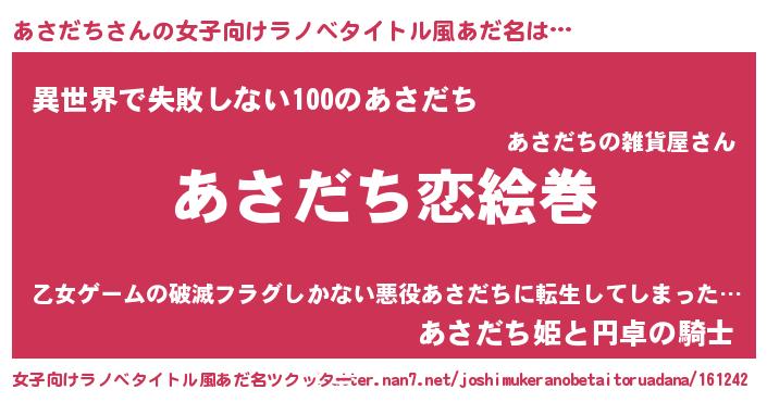 | ファンタジー風あだ名 | 『クインアット』『アサディッシュ』 |