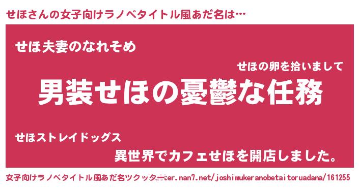 | 男性向けラノベタイトル風あだ名 | 『うちのせほが世界を掌握している!』 |