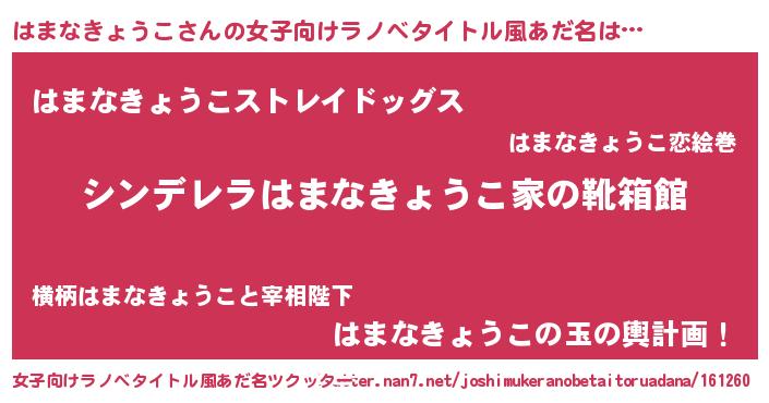 | 意味不明あだ名 | 『自称はまなきょうこ』 |