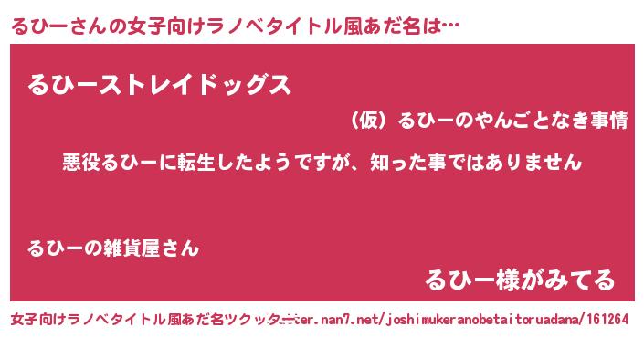 | ヘコむあだ名 | 『るひっちょ』『るひにゅー』 |