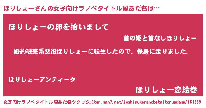| 男性向けラノベタイトル風あだ名 | 『ホリショースレイヤー』 |