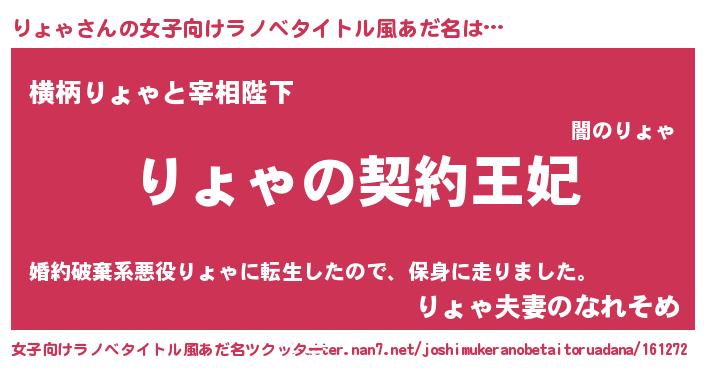| 胡散臭い通販商品みたいなあだ名 | 『来世でも幸せになれる招き猫…その名も「りょゃ」』 |