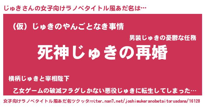 | 男性向けラノベタイトル風あだ名 | 『ノーゲーム・ノージュキ』 |