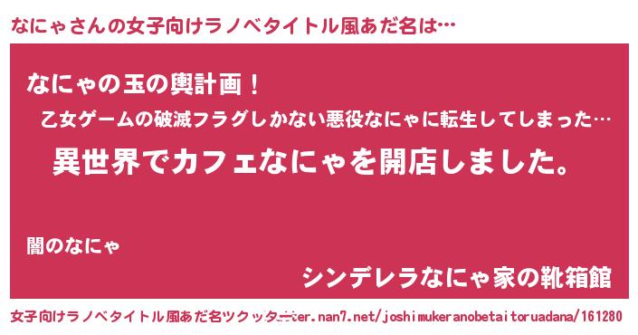 | 男性向けラノベタイトル風あだ名 | 『誰もが恐れるあのなにゃが、ぼくの専属メイドになるようです。』 |