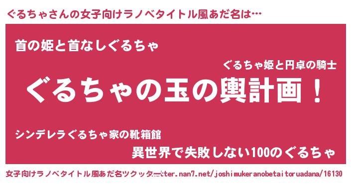| 男性向けラノベタイトル風あだ名 | 『転生したらぐるちゃだった件』 |