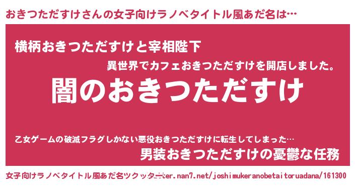 | 意味不明あだ名 | 『自称おきつただすけ』 |