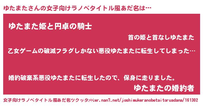 | 男性向けラノベタイトル風あだ名 | 『魔弾の王とゆたまた』 |