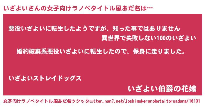 | 男性向けラノベタイトル風あだ名 | 『イザヨイスレイヤー』 |
