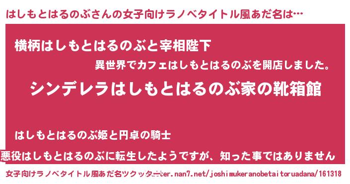 | ヘコむあだ名 | 『はしもとはるのぶ(小並感)』『はしにー』 |