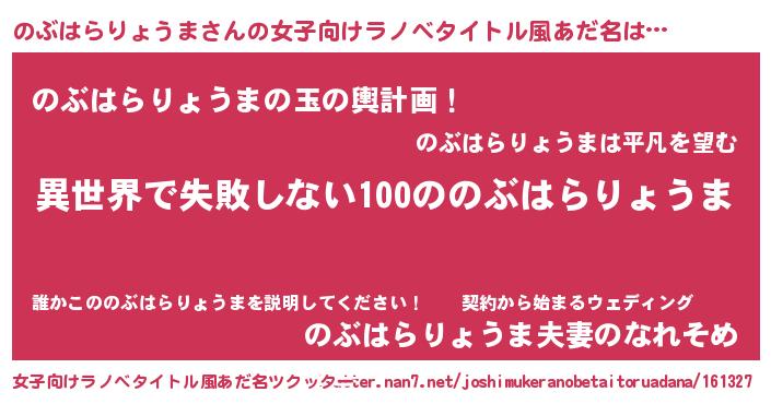 | 可愛いあだ名 | 『のぶはらりょうまママ』『のぶぷりん』 |