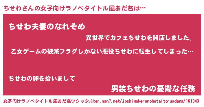 | 男性向けラノベタイトル風あだ名 | 『この素晴らしい世界にちせわを!』 |