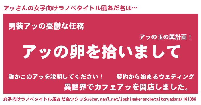 | 男性向けラノベタイトル風あだ名 | 『ダンジョンにアッを求めるのは間違っているだろうか』 |