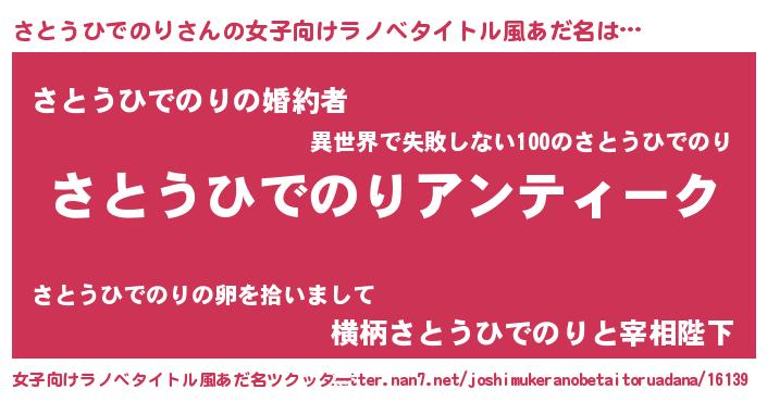 | 男性向けラノベタイトル風あだ名 | 『魔法科高校のさとうひでのり』 |