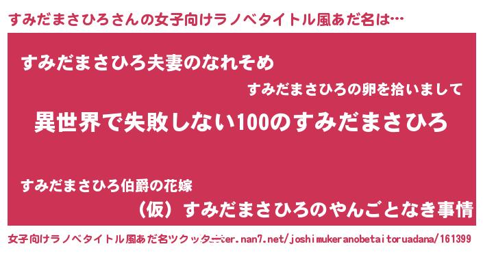 | ヘコむあだ名 | 『すみだまさひろ(遠い目)』『すみっふぃ~』 |