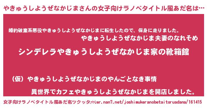 | ヒーロー風カッコイイあだ名 | 『ネオヤキュウシヨウゼナカジマ』 |