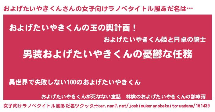 | 男性向けラノベタイトル風あだ名 | 『うちのおよげたいやきくんが世界を掌握している!』 |