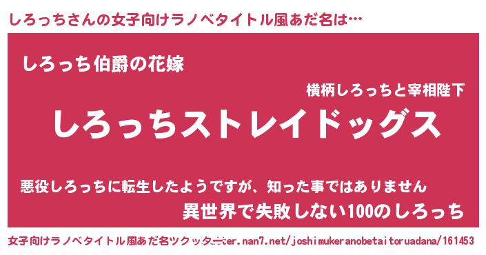 | 男性向けラノベタイトル風あだ名 | 『Re:しろっちから始める異世界生活』 |