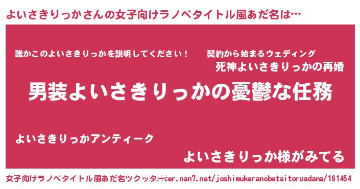 | 男性向けラノベタイトル風あだ名 | 『うちのよいさきりっかが世界を掌握している!』 |