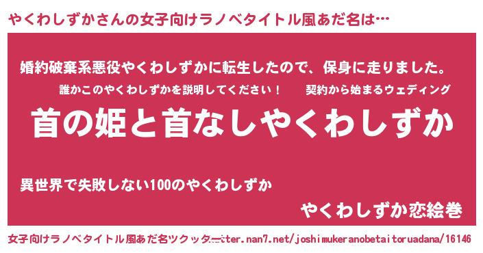 | 欧米人風あだ名 | 『アンジェラ・やくわしずか』 |