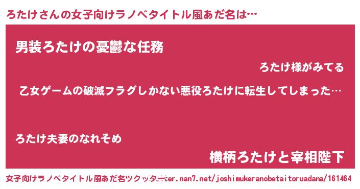 | 男性向けラノベタイトル風あだ名 | 『魔弾の王とろたけ』 |
