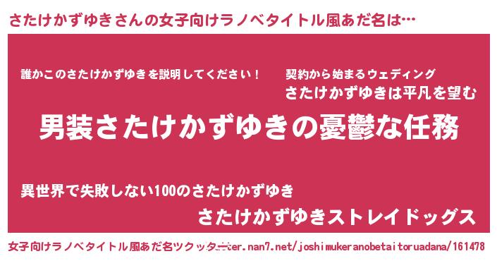 | 男性向けラノベタイトル風あだ名 | 『うちのさたけかずゆきが世界を掌握している!』 |