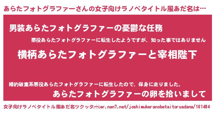 | 欧米人風あだ名 | 『アンジェラ・あらたフォトグラファー』 |
