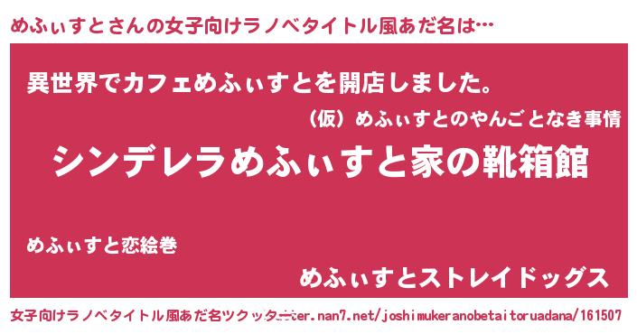 | 胡散臭い通販商品みたいなあだ名 | 『絶対に幸福をもたらす健康食品…その名も「めふぃすと」』 |