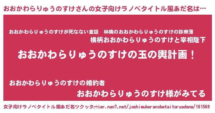 | 男性向けラノベタイトル風あだ名 | 『転生したらおおかわらりゅうのすけだった件』 |