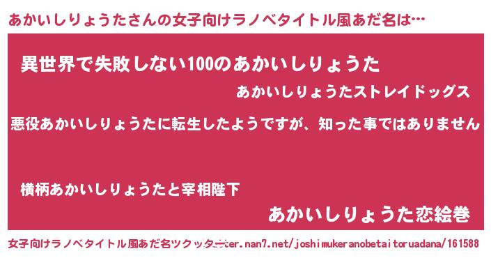 | 意味不明あだ名 | 『住所不定無職あかいしりょうた(56歳)』 |