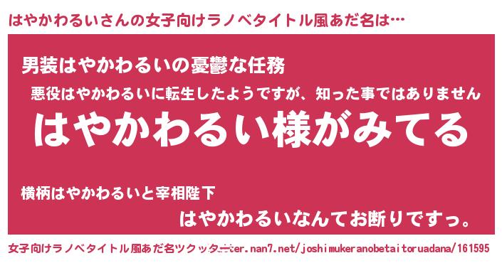 | 男性向けラノベタイトル風あだ名 | 『はやかわるいの嫁は女の子じゃないと思った?』 |
