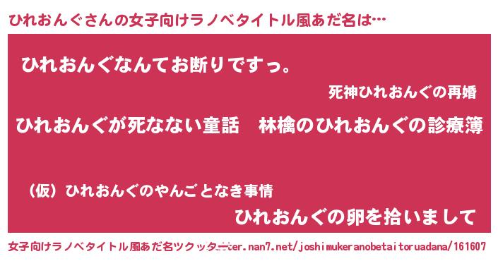 | 意味不明あだ名 | 『住所不定無職ひれおんぐ(40歳)』 |
