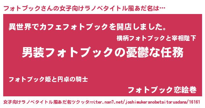 | 男性向けラノベタイトル風あだ名 | 『うちのフォトブックが世界を掌握している!』 |