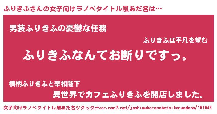 | 男性向けラノベタイトル風あだ名 | 『魔法科高校のふりきふ』 |