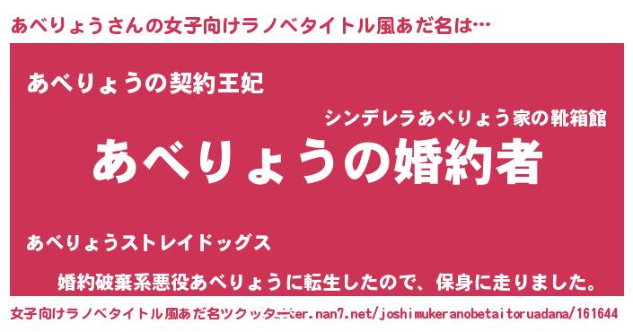 | 意味不明あだ名 | 『あべりょうフォーエバー』 |