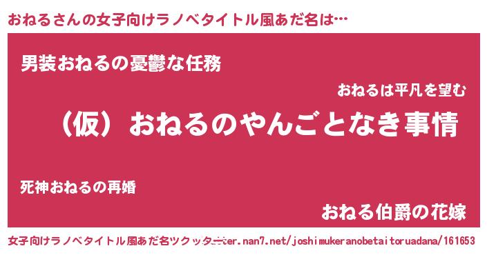 | 胡散臭い通販商品みたいなあだ名 | 『必ず成功する水晶球…その名も「おねる」』 |
