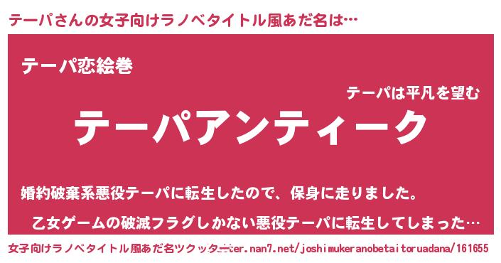 | 胡散臭い通販商品みたいなあだ名 | 『テレビで話題の高麗人参…その名も「テーパ」』 |