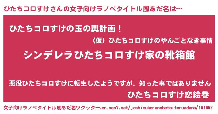 | 男性向けラノベタイトル風あだ名 | 『冴えないひたちコロすけの育てかた』 |