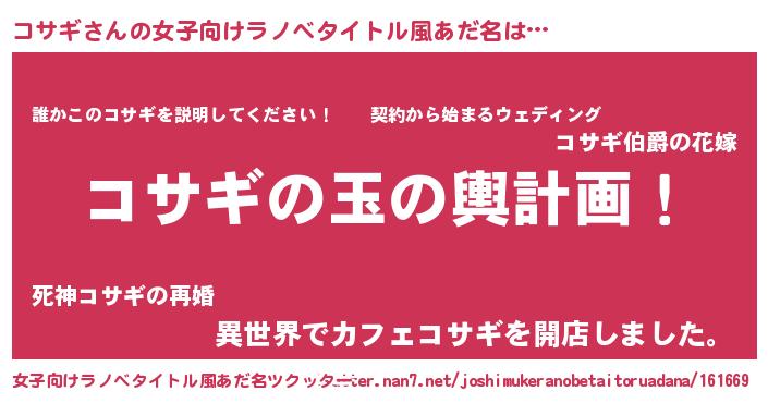 | 胡散臭い通販商品みたいなあだ名 | 『億万長者になれるブレスレット…その名も「コサギ」』 |