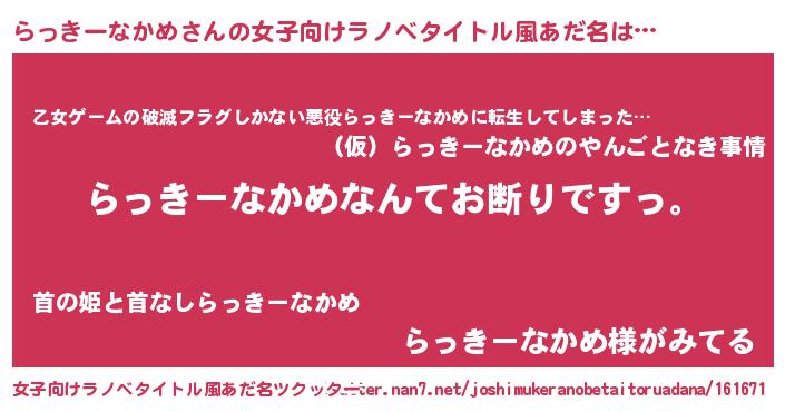 | 意味不明あだ名 | 『自称らっきーなかめ』 |