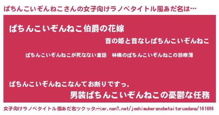 | 料理風あだ名 | 『ぱちんこいぞんねこのカルパッチョ風』 |