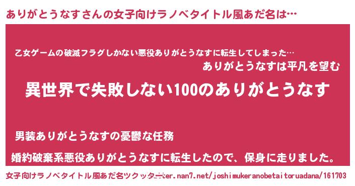 ヘコむあだ名 | 『ありがとうなす(小並感)』『ありを』 |