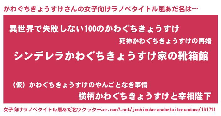 | 意味不明あだ名 | 『永久保存かわぐちきょうすけ』 |