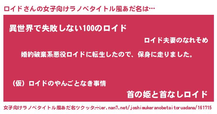 | ヘコむあだ名 | 『ロイド(小並感)』『ロイふぇ~』 |
