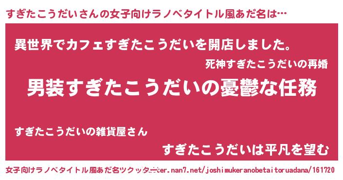 | ヒーロー風カッコイイあだ名 | 『ネオスギタコウダイ』『炎刃騎士スギ』 |