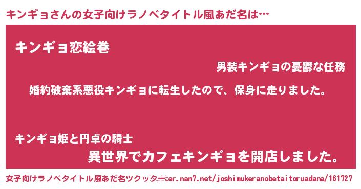 | 男性向けラノベタイトル風あだ名 | 『キンギョスレイヤー』『キンギョの憂鬱』 |